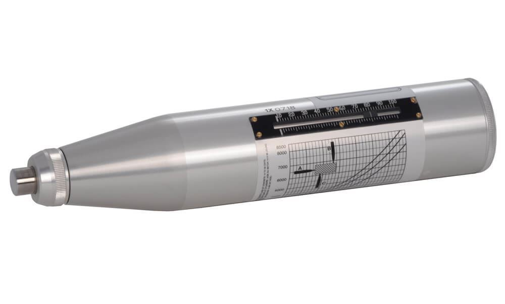 Rebound hammer ของมวลสปริงที่กระทบกับพื้นผิวของตัวอย่าง Rebound hammer ด้วยพลังงานที่กำหนด การสะท้อนกลับขึ้นอยู่กับความแข็งของคอนกรีตและวัดโดยอุปกรณ์ทดสอบ โดยอ้างอิงจากแผนภูมิการแปลง ค่าการสะท้อนกลับสามารถใช้กำหนดกำลังรับแรงอัดของคอนกรีตได้ เมื่อทำการทดสอบ ค้อนควรจับที่มุมฉากกับพื้นผิว ซึ่งจะทำให้เรียบและเรียบ การอ่านค่าการสะท้อนกลับจะได้รับผลกระทบจากการวางแนวของRebound hammer : เมื่อใช้ในทิศทางขึ้น (เช่น ที่ด้านล่างของแผ่นพื้นแบบแขวน) แรงโน้มถ่วงจะเพิ่มระยะการสะท้อนกลับของมวล และในทางกลับกันสำหรับการทดสอบบนพื้น แผ่นพื้น การวัด Rebound hammer อยู่ในมาตราส่วนตั้งแต่ 10 ถึง 100